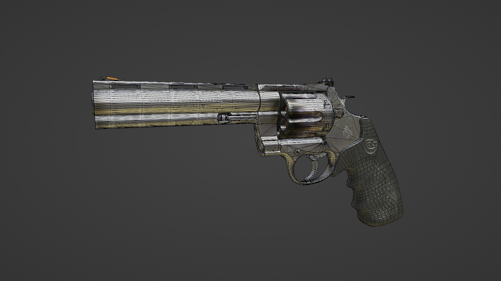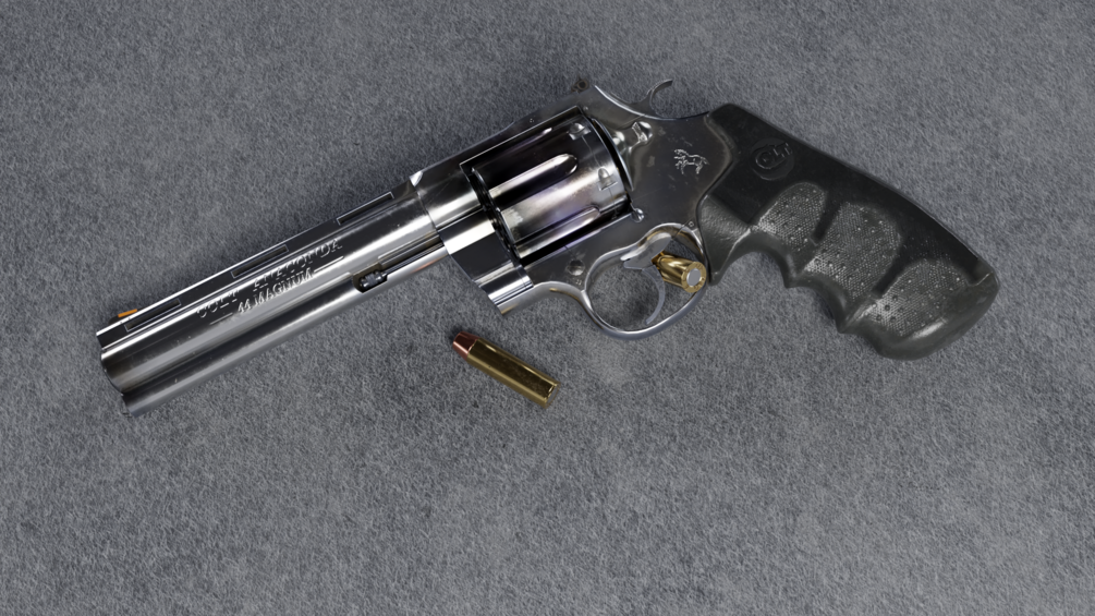 Mid-Pole game ready model of Revolver Colt Anaconda with realistic PBR textures 2k resolution Texel density 74.7 px/cm